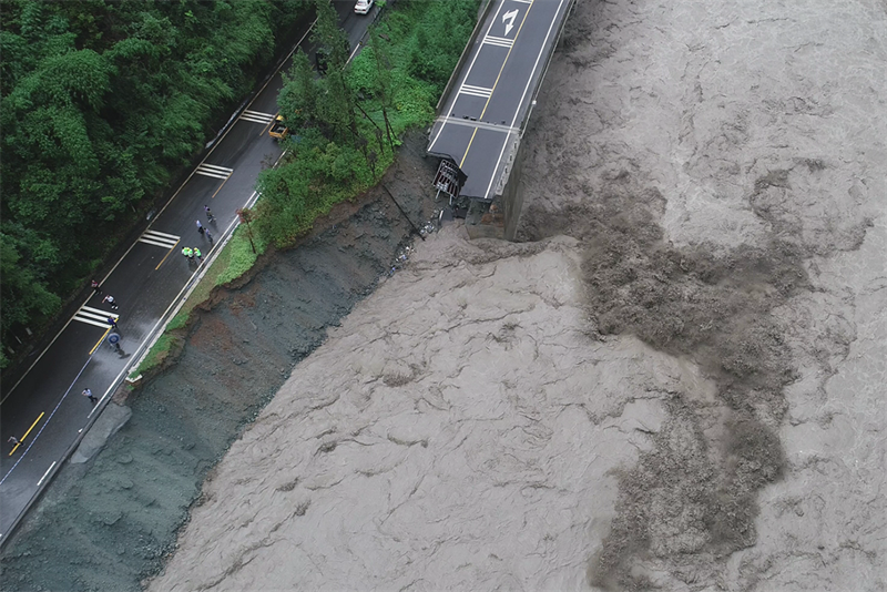 8月22日,受持續(xù)特大暴雨影響,寶興縣境內(nèi)G351、S308、S432三條國(guó)省干線多處受災(zāi)損毀。按照市交通運(yùn)輸局統(tǒng)一安排部署,交建集團(tuán)迅速啟動(dòng)受損路段的勘探調(diào)查工作。