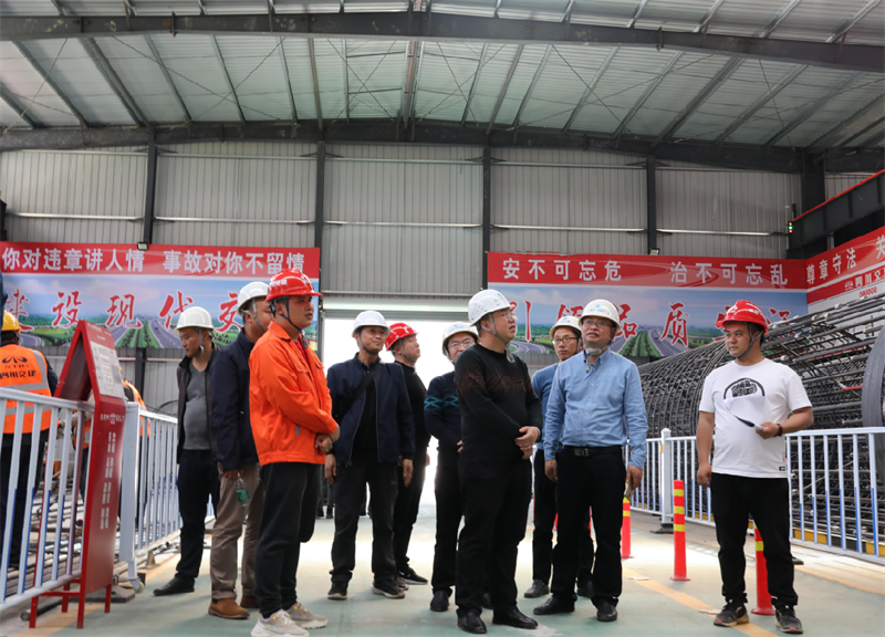羅倫全一行通過聽取介紹、實(shí)地查看、座談交流的方式,重點(diǎn)就項(xiàng)目部駐地規(guī)范化、精細(xì)化建設(shè),鋼筋加工場(chǎng)、拌合站、隧道洞口等主要施工場(chǎng)地的場(chǎng)地規(guī)劃、安全設(shè)施布置,鋼筋加工場(chǎng)和拌合站智能化、標(biāo)準(zhǔn)化作業(yè),隧道工程科學(xué)化施工、黨建文化生活、勞務(wù)管理等進(jìn)行全面學(xué)習(xí)交流。