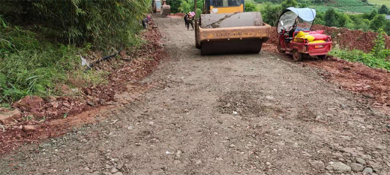 在路橋公司承接的“世界銀行貸款蘆山地震災(zāi)后恢復(fù)重建天全縣始陽至新華農(nóng)村公路”項目天全縣新華鄉(xiāng)柏樹村至永安村段,其村道路面結(jié)構(gòu)層差,路基窄,雨水多,晴通雨阻,對本地農(nóng)產(chǎn)品外運造成很大困擾,嚴重影響了民眾的生產(chǎn)生活。為積極響應(yīng)市委市政府加快雅安市“四好農(nóng)村路”的部署安排,解決當?shù)卮迕癯鲂须y、本土農(nóng)產(chǎn)品外銷滯后等問題,路橋公司天全項目部主動作為,在推進項目部主體建設(shè)的同時,堅持以問題為導(dǎo)向,采用“始新路”施工現(xiàn)場自拌水穩(wěn)料,為村民鋪設(shè)了一段長臨時水穩(wěn)路面,方便廣大村民順利出行,促進當?shù)剞r(nóng)產(chǎn)品物資交流。