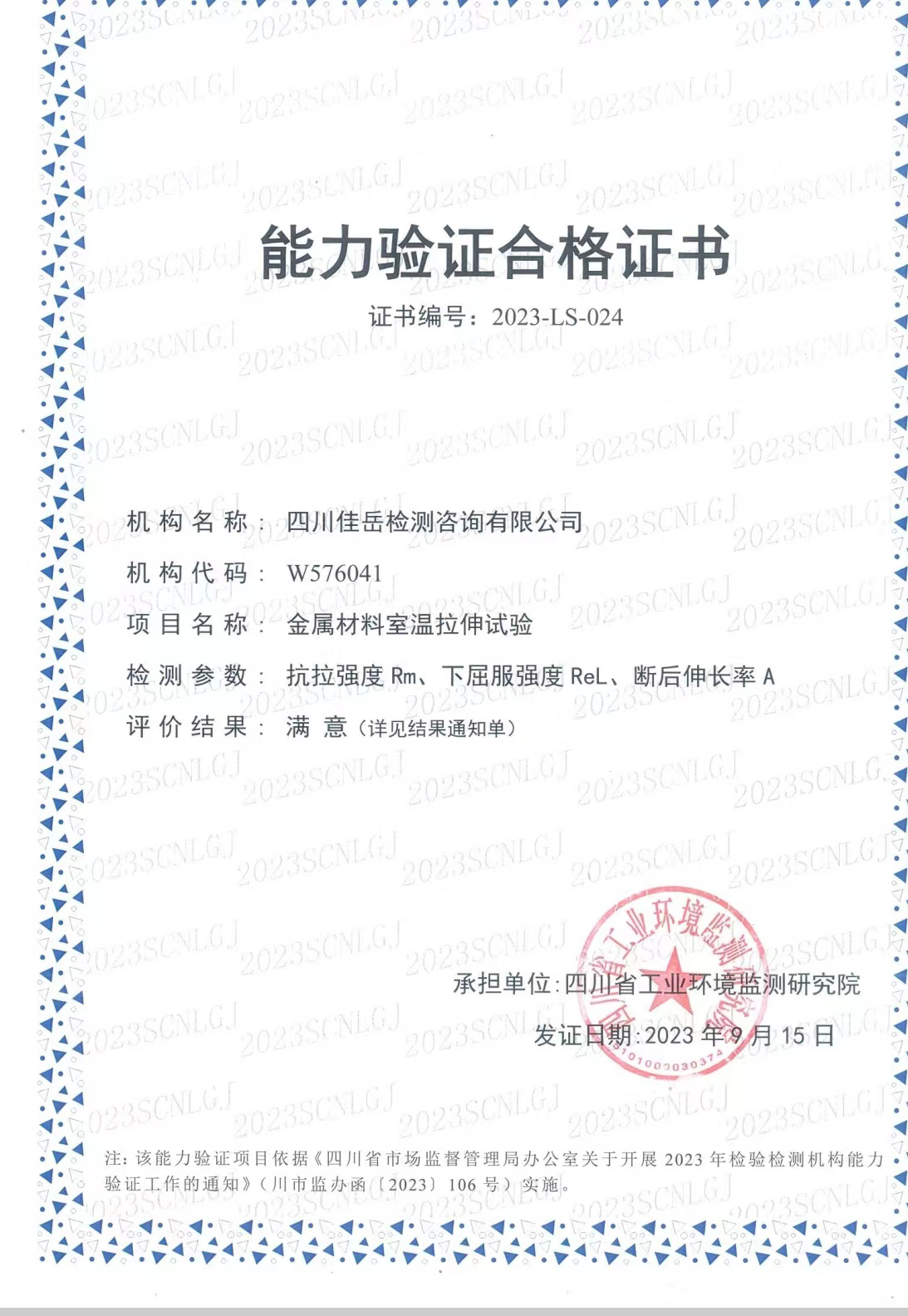 四川佳岳檢測(cè)咨詢有限公司順利通過2023年度省市場(chǎng)監(jiān)管局能力驗(yàn)證