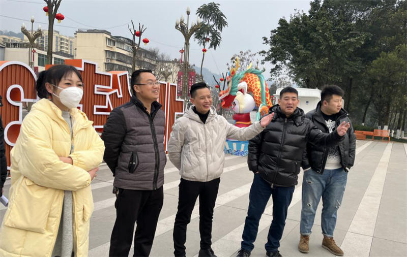 市委宣傳部副部長、市文明辦主任袁嘉偉(左二)實地查看北緯30度公園LED大屏美化項目現(xiàn)場