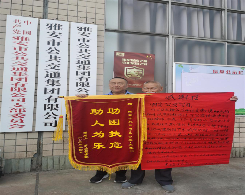 近日,雅安市公共交通集團(tuán)有限公司5路公交車駕駛員支亳川,在行駛過(guò)程中熱心幫助一老人成功尋找到家人,給文明雨城增添了暖心的一幕。4月17日,老人和家人帶著親手寫的感謝信和錦旗,來(lái)到公交集團(tuán)當(dāng)面感謝公交集團(tuán)和5路駕駛員支師傅熱心助人的善舉。