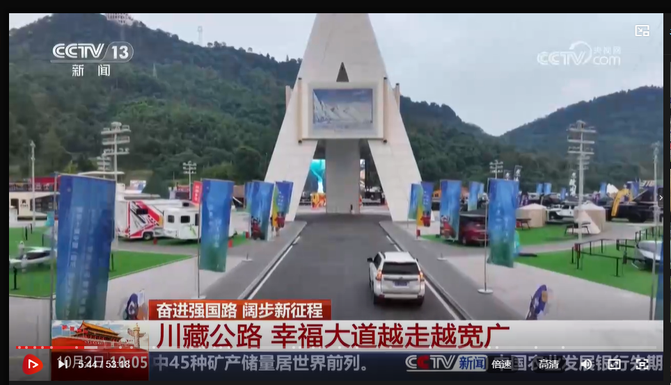 為慶祝新中國成立75周年,展現(xiàn)中國式現(xiàn)代化進(jìn)程中的發(fā)展成就。10月2日,中央廣播電視總臺推出《[奮進(jìn)強(qiáng)國路 闊步新征程]川藏公路 幸福大道越走越寬廣》特別節(jié)目,對大本營基本情況及正在開展的全國裝備展銷會進(jìn)行了報道。