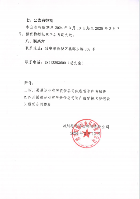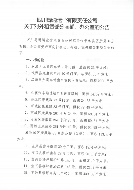 四川蜀通運業(yè)有限責(zé)任公司關(guān)于對外租賃部分門面、辦公室資產(chǎn)的公告附件