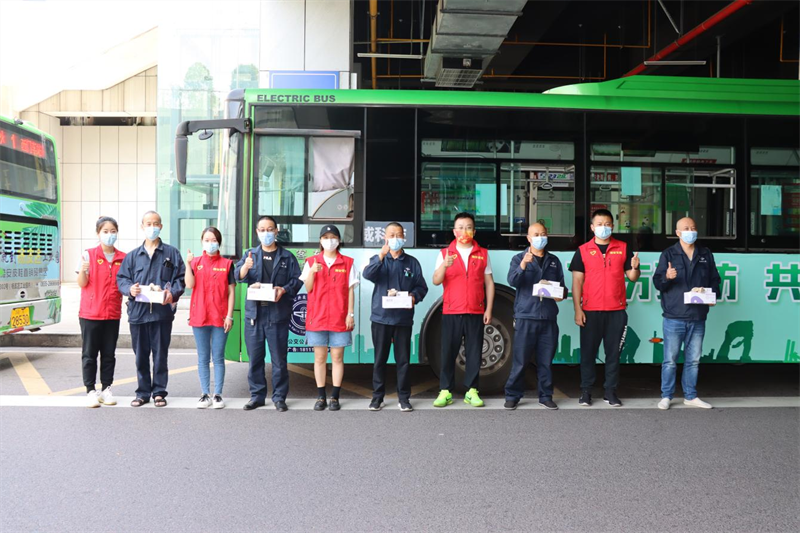 最后,青年團(tuán)員們帶著親手制作的40份防疫香囊、藿香正氣液、口罩等防疫消暑慰問品,來到市區(qū)內(nèi)的各個(gè)公交車站點(diǎn)開展了志愿者服務(wù)活動(dòng)。團(tuán)員志愿者們親手為公交駕駛員師傅送上了慰問物質(zhì),關(guān)切詢問他們的作息時(shí)間、身體狀況等,并感謝他們?yōu)槌鞘邪l(fā)展和群眾出行付出的辛苦勞動(dòng),同時(shí)叮囑大家在高溫季節(jié)一定要注意勞逸結(jié)合,做好防疫和防暑措施。