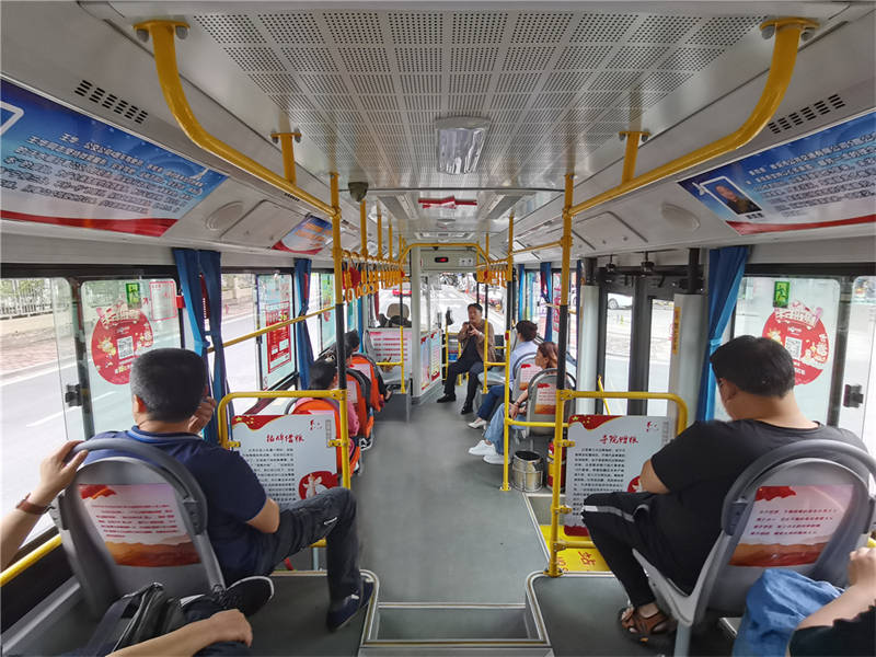 13路公交線路連接雨城區(qū)東西方向,客流量充足,群眾覆蓋范圍廣。雅安交建集團(tuán)依托車頭、車廂文化,通過(guò)圖片、展板等形式,圖文并茂、簡(jiǎn)明扼要介紹“五四”精神、“紅船精神”、“井岡山精神”、“強(qiáng)渡大渡河”、“飛奪瀘定橋”、“翻越夾金山”、“延安精神”等紅色主題,成為一道流動(dòng)的文明風(fēng)景線。乘坐在13路“紅色公交”車上,乘客可了解黨的光輝故事,重溫中國(guó)共產(chǎn)黨波瀾壯闊的輝煌歷程,更多的參與到黨史學(xué)習(xí)教育中來(lái),在乘車的短暫時(shí)光中學(xué)有所得、學(xué)有所思、學(xué)有所悟。