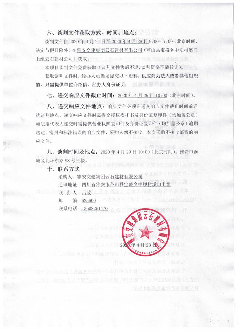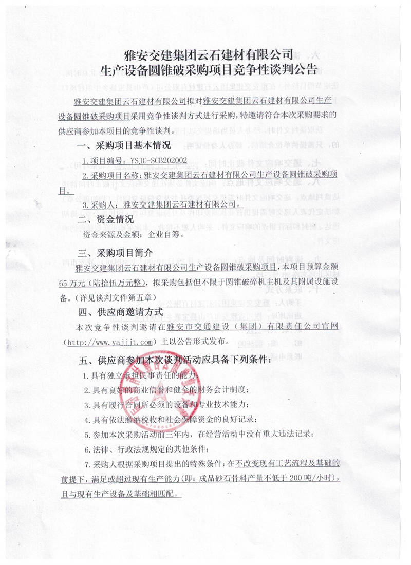 雅安交建集團(tuán)云石建材有限公司生產(chǎn)設(shè)備圓錐破采購項(xiàng)目競(jìng)爭(zhēng)性談判公告