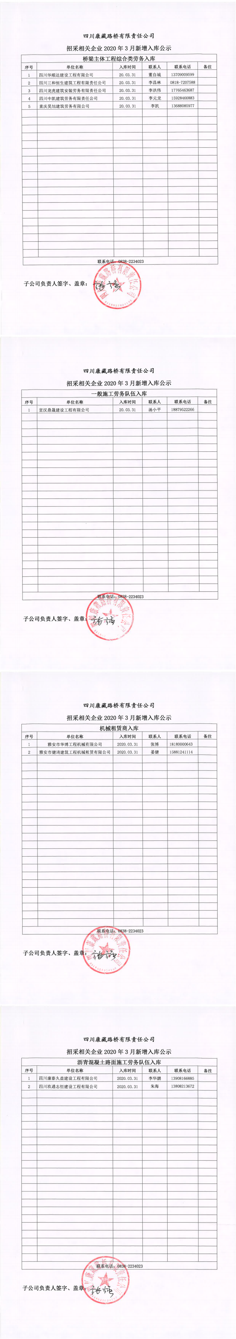 四川康藏路橋有限責任公司招采相關企業(yè)2020年3月新增入庫公示