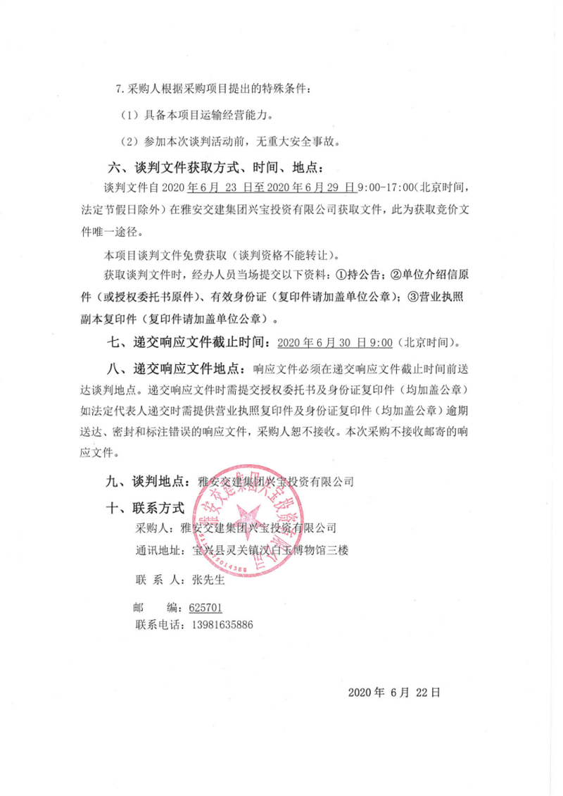 雅安交建集團(tuán)興寶投資有限公司靈關(guān)鎮(zhèn)代碑寺物流園土地整理?xiàng)壴\(yùn)輸采購項(xiàng)目二期競(jìng)爭(zhēng)性談判公告