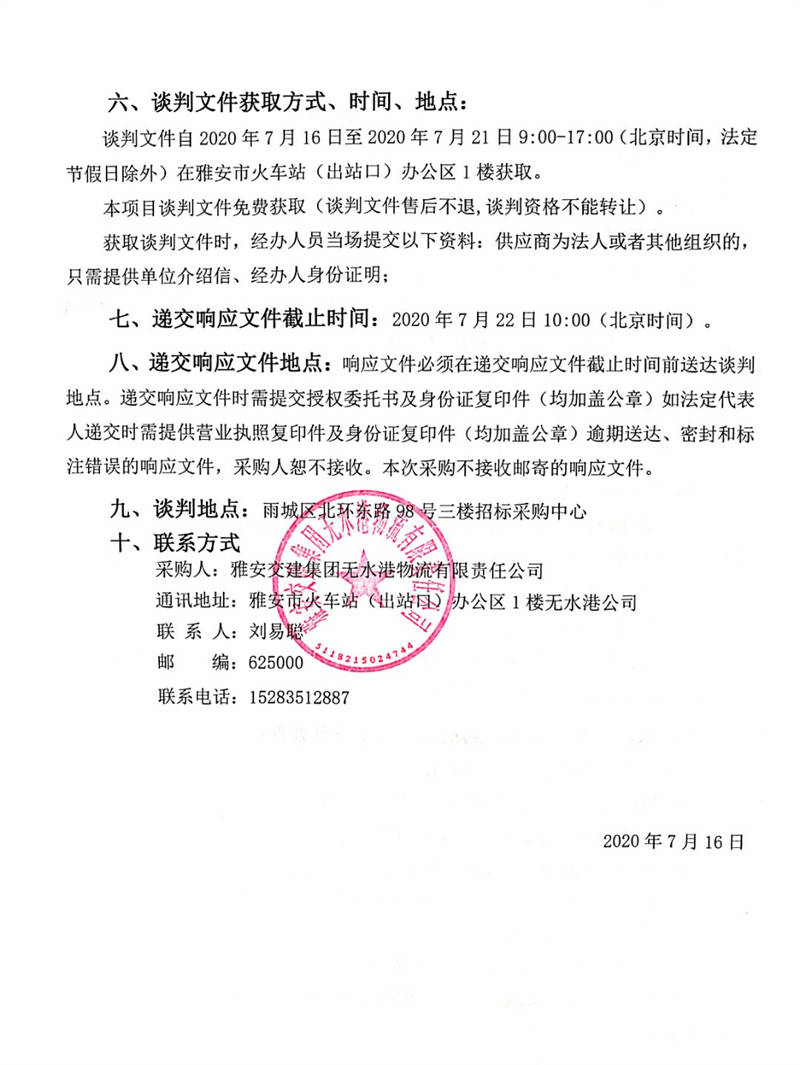 雅安交建集團(tuán)無(wú)水港物流有限責(zé)任公司雅安市鳳鳴綜合物流園項(xiàng)目戶外廣告牌制作安裝施工項(xiàng)目(第二次)競(jìng)爭(zhēng)性談判公告