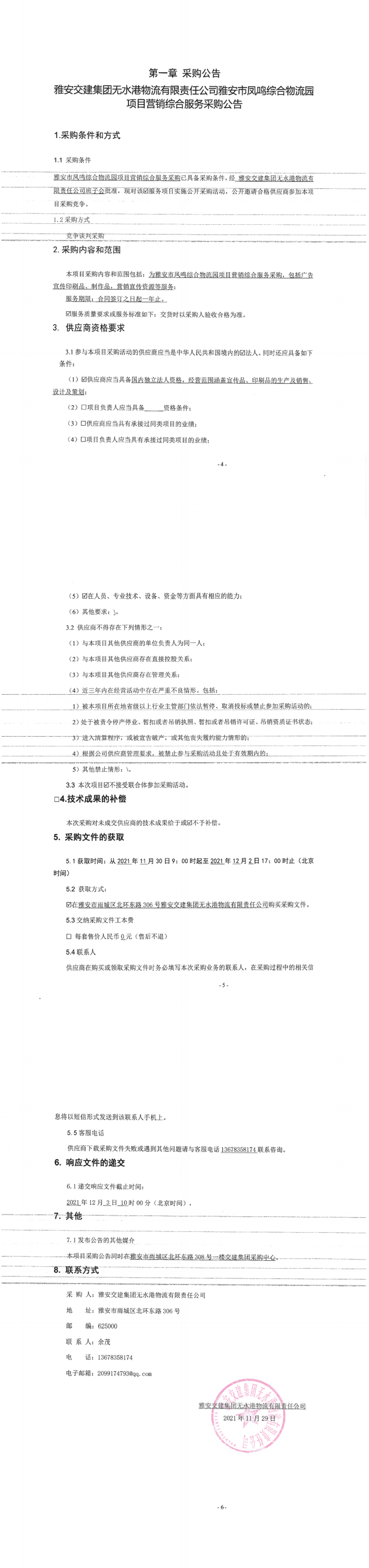 雅安交建集團(tuán)無(wú)水港物流有限責(zé)任公司雅安市鳳鳴綜合物流園項(xiàng)目營(yíng)銷(xiāo)綜合服務(wù)采購(gòu)公告