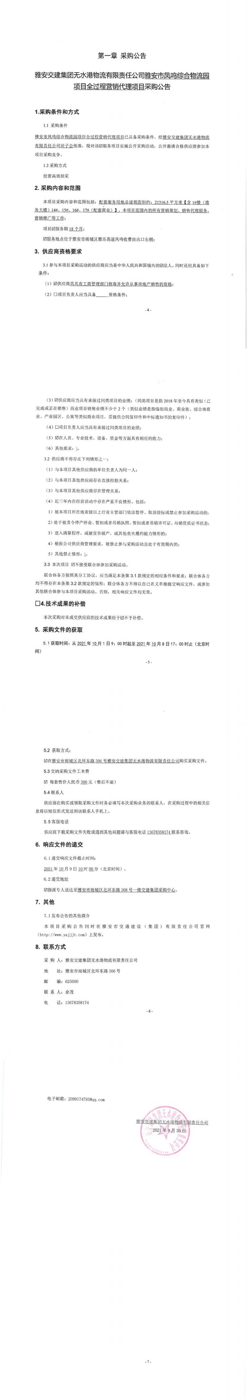 雅安交建集團無水港物流有限責(zé)任公司雅安市鳳鳴綜合物流園項目全過程營銷代理項目采購公告