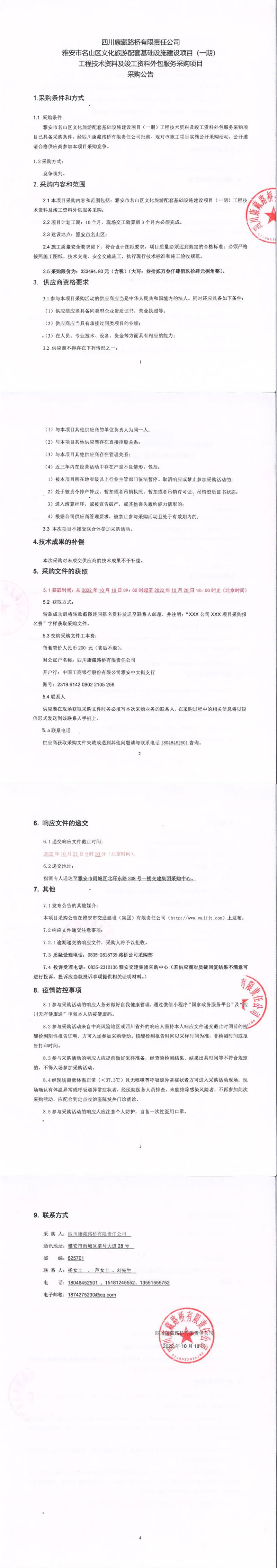 四川康藏路橋有限責(zé)任公司雅安市名山區(qū)文化旅游配套基礎(chǔ)設(shè)施建設(shè)項目(一期)工程技術(shù)資料及竣工資料外包服務(wù)采購項目采購公告