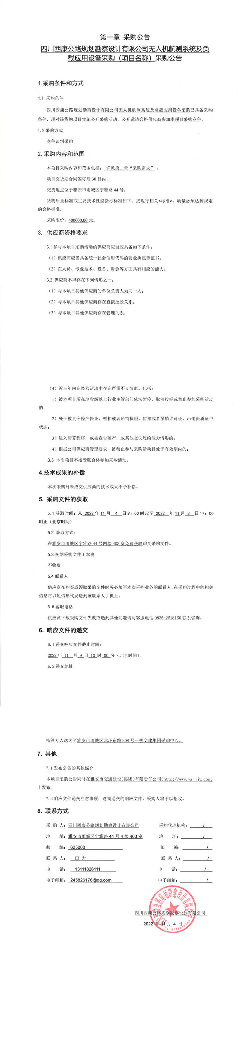 四川西康公路規(guī)劃勘察設(shè)計(jì)有限公司無人機(jī)航測(cè)系統(tǒng)及負(fù)載應(yīng)用設(shè)備采購(gòu)(項(xiàng)目名稱)采購(gòu)公告
