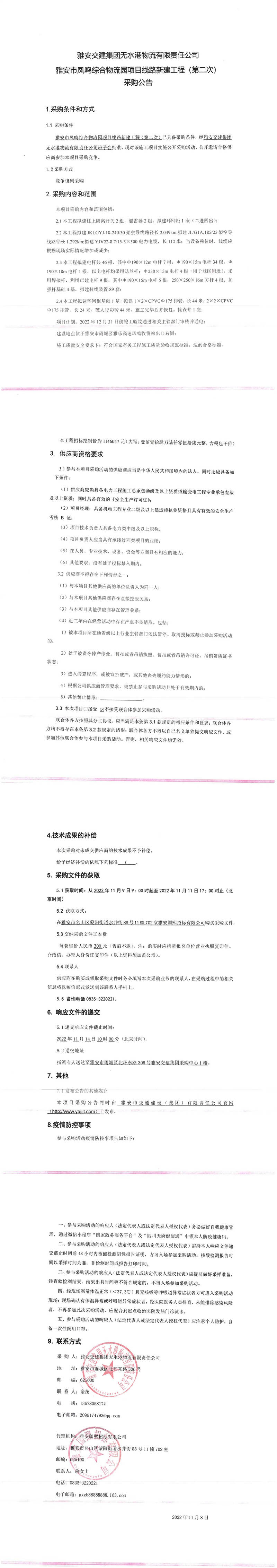 雅安交建集團無水港物流有限責(zé)任公司雅安市鳳鳴綜合物流園項目線路新建工程(第二次)采購公告