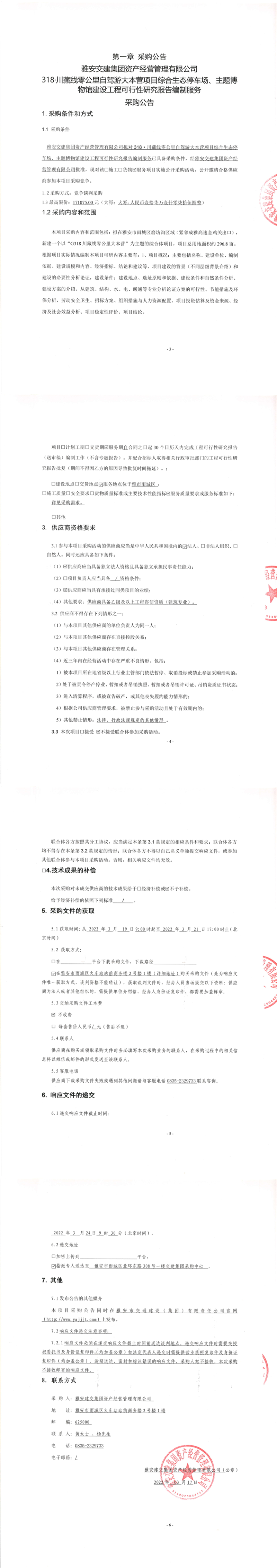 雅安交建集團資產經營管理有限公司318.川藏線零公里自駕游大本營項目綜合生態(tài)停車場、主題博物館建設工程可行性研究報告編制服務采購公告