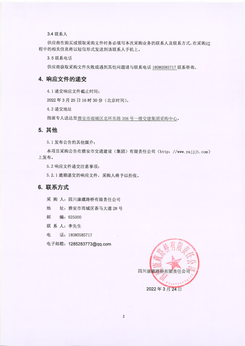 四川康藏路橋有限責任公司國道318名山區(qū)黑竹(成都界)至雨城區(qū)多營段改建工程雨城籌建段灑水車租賃項目競價公告