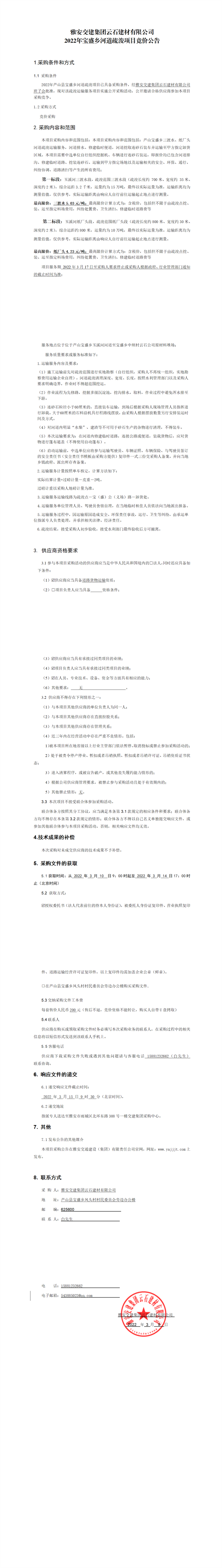 雅安交建集團云石建材有限公司2022年寶盛鄉(xiāng)河道疏浚項目競價公告