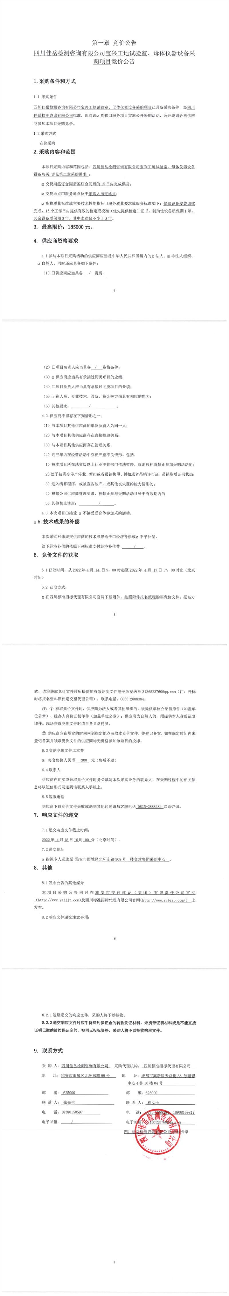 四川佳岳檢測(cè)咨詢有限公司寶興工地試驗(yàn)室、母體儀器設(shè)備采購項(xiàng)目競(jìng)價(jià)公告