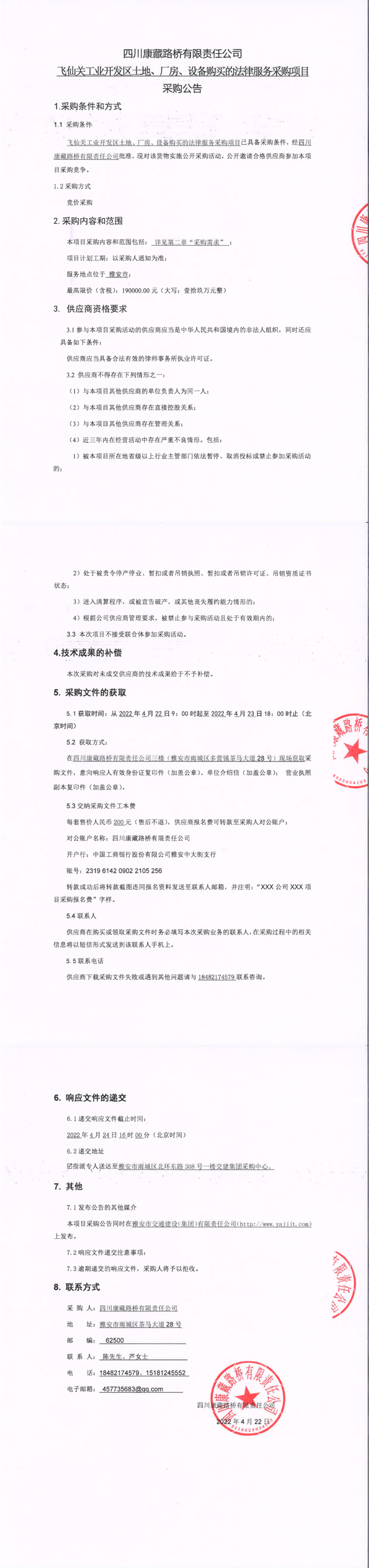 四川康藏路橋有限責任公司飛仙關工業(yè)開發(fā)區(qū)土地、廠房、設備購買的法律服務采購項目采購公告
