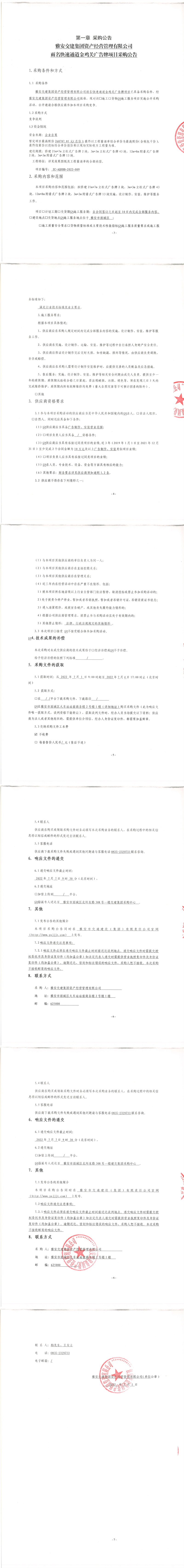 雅安交建集團(tuán)資產(chǎn)經(jīng)營管理有限公司雨名快速通道金雞關(guān)廣告牌項目采購公告