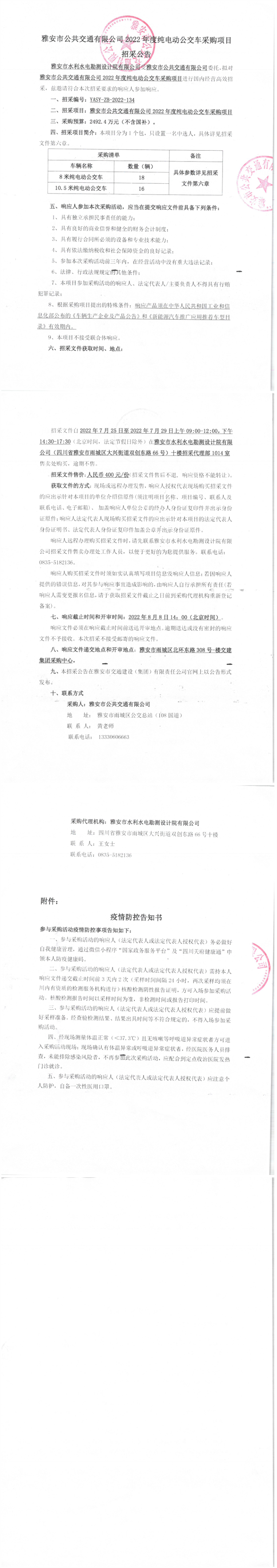 雅安市公共交通有限公司2022年度純電動(dòng)公交車(chē)采購(gòu)項(xiàng)目招采公告