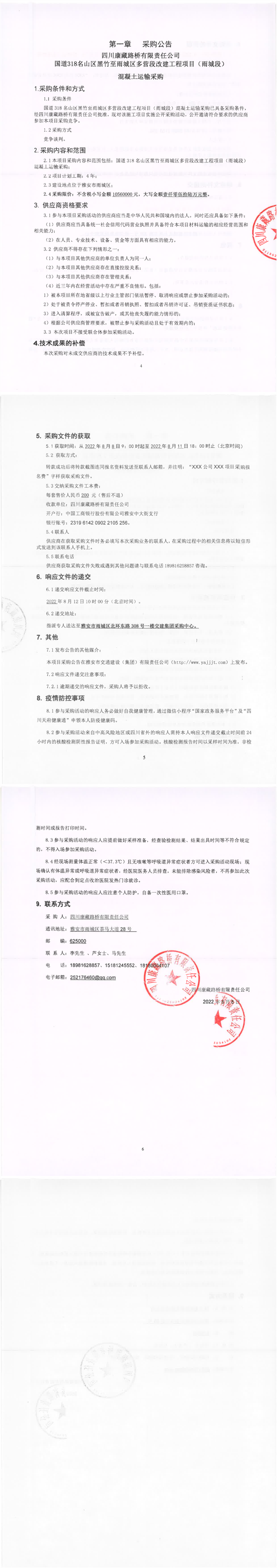 四川康藏路橋有限責(zé)任公司國(guó)道318名山區(qū)黑竹至雨城區(qū)多營(yíng)段改建工程項(xiàng)目(雨城段)混凝土運(yùn)輸采購(gòu)公告