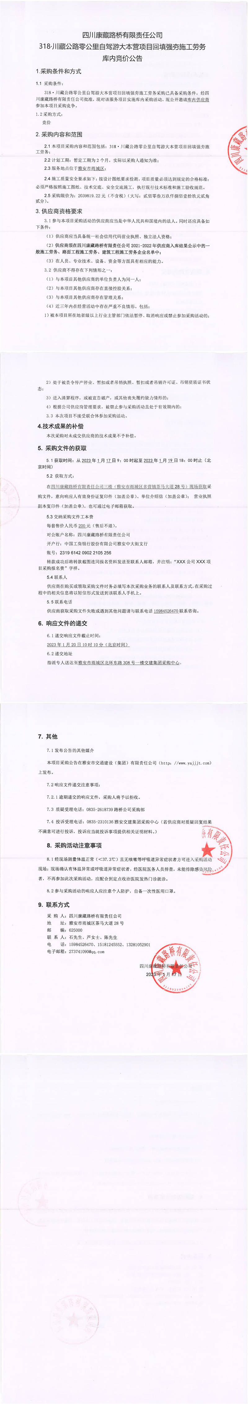 四川康藏路橋有限責(zé)任公司S431蘆山縣龍門至雙石段改建工程項(xiàng)目邊坡防護(hù)工程施工勞務(wù)采購競(jìng)爭(zhēng)談判結(jié)果公示
