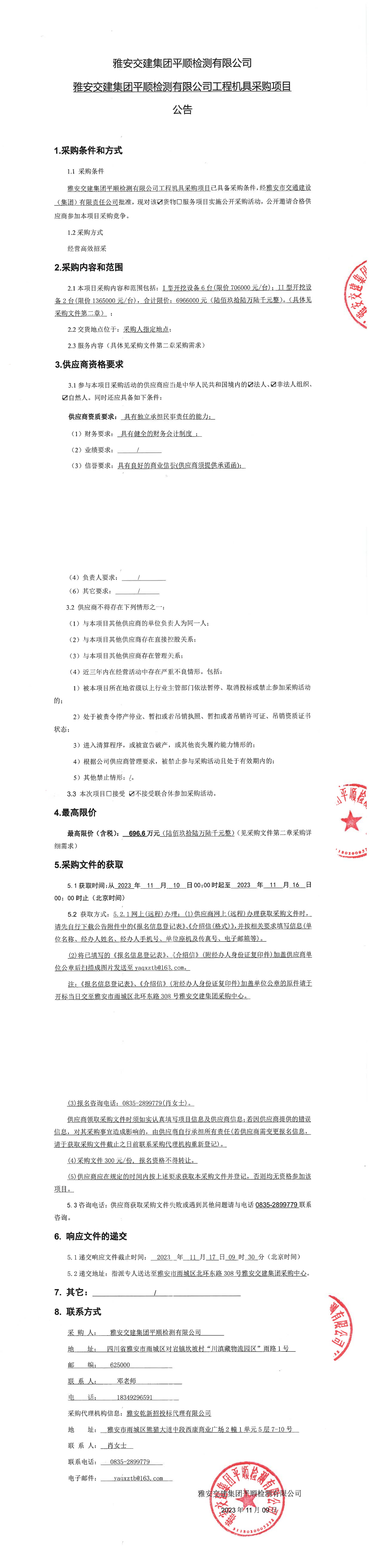 雅安交建集團(tuán)平順檢測有限公司工程機(jī)具采購項(xiàng)目公告