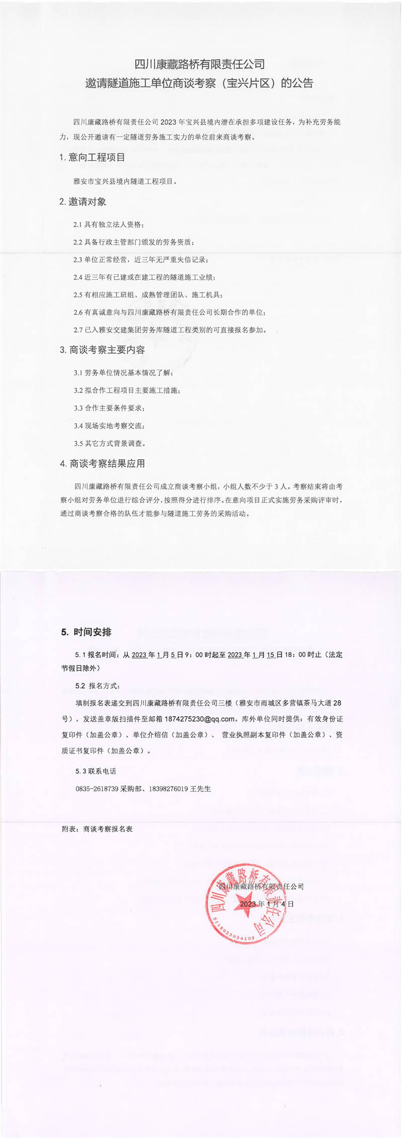 四川康藏路橋有限責(zé)任公司邀請隧道施工單位商談考察(寶興片區(qū))的公告