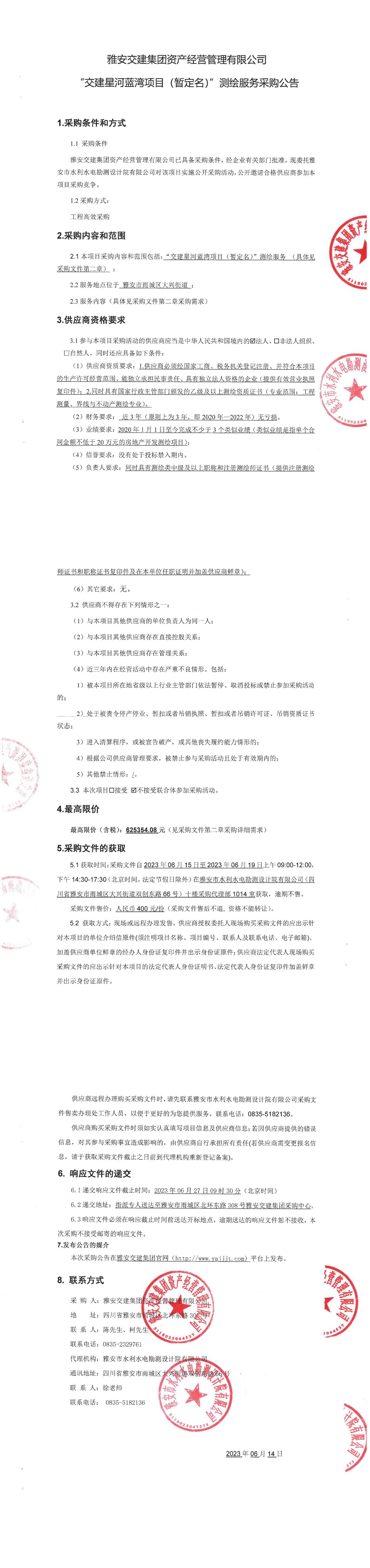 雅安交建集團(tuán)資產(chǎn)經(jīng)營管理有限公司“交建星河藍(lán)灣項(xiàng)目(暫定名)”測繪服務(wù)采購公告