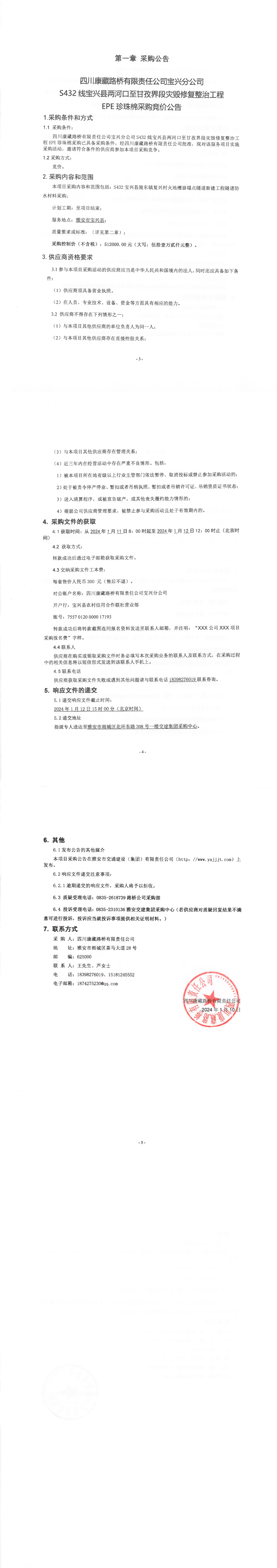 四川康藏路橋有限責任公司寶興分公司S432線寶興縣兩河口至甘孜界段災(zāi)毀修復(fù)整治工程EPE珍珠棉采購競價公告