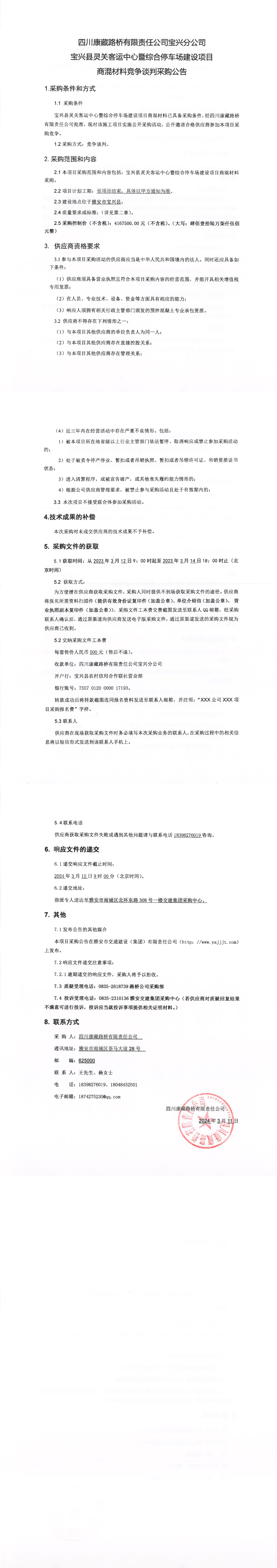 四川康藏路橋有限責任公司寶興縣靈關客運中心暨綜合停車場建設項目商混材料競爭談判采購公告