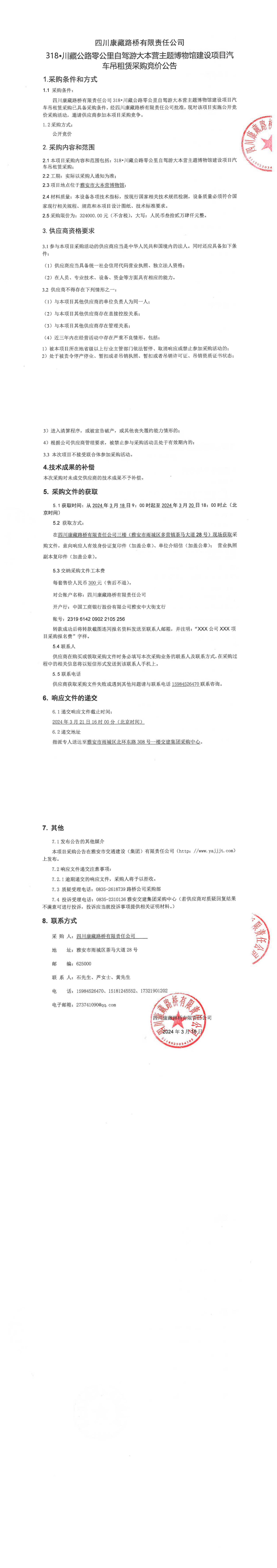 四川康藏路橋有限責(zé)任公司318•川藏公路零公里自駕游大本營(yíng)主題博物館建設(shè)項(xiàng)目汽車吊租賃采購(gòu)競(jìng)價(jià)公告