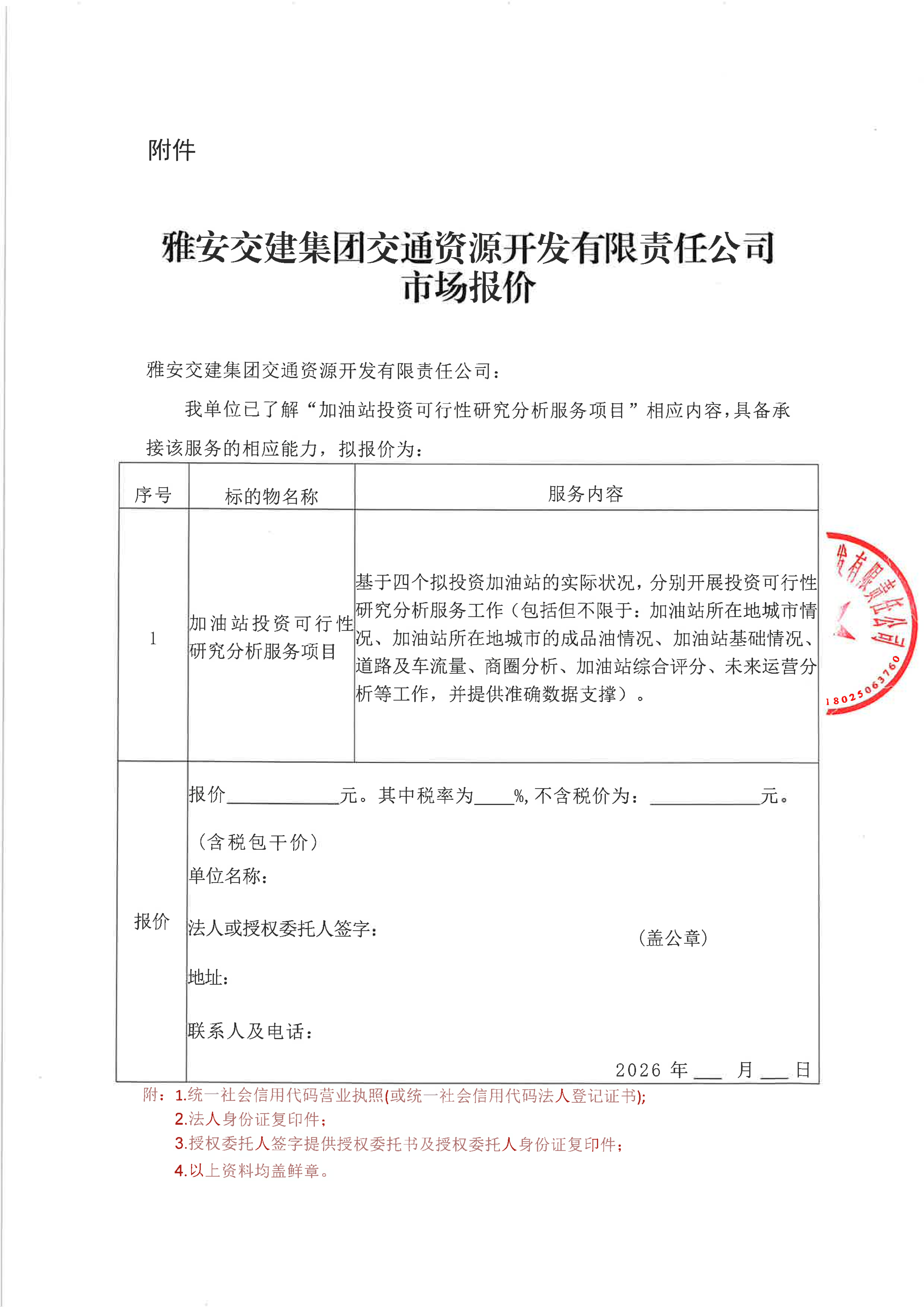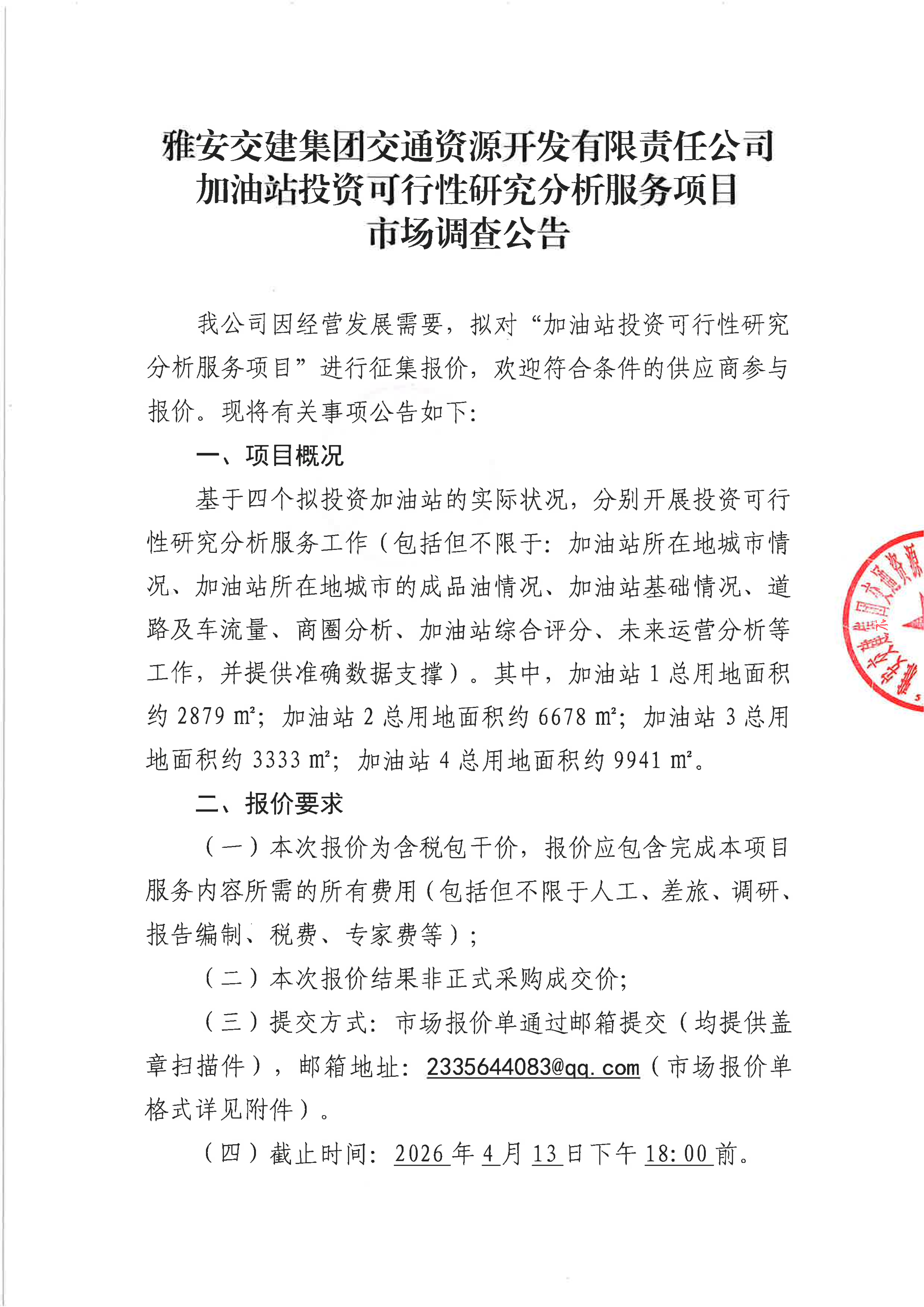 雅安交建集團交通資源開發(fā)有限責任公司加油站投資可行性研究分析服務項目市場調(diào)查公告