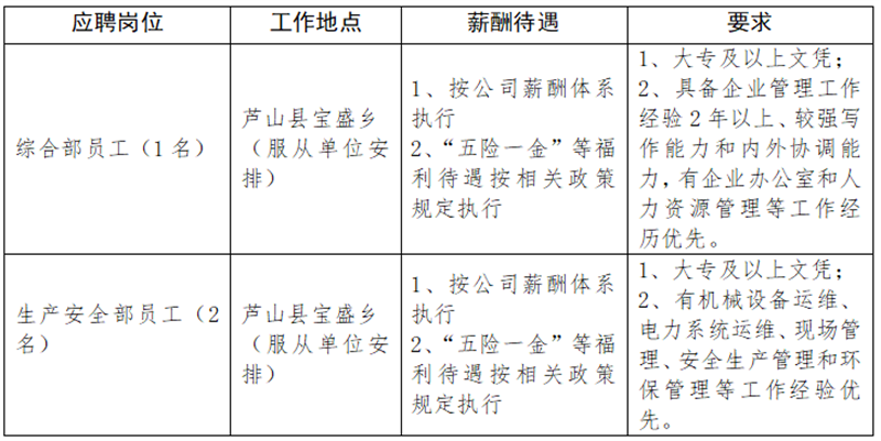 雅安交建集團云石建材有限公司關于招聘工作人員的公告