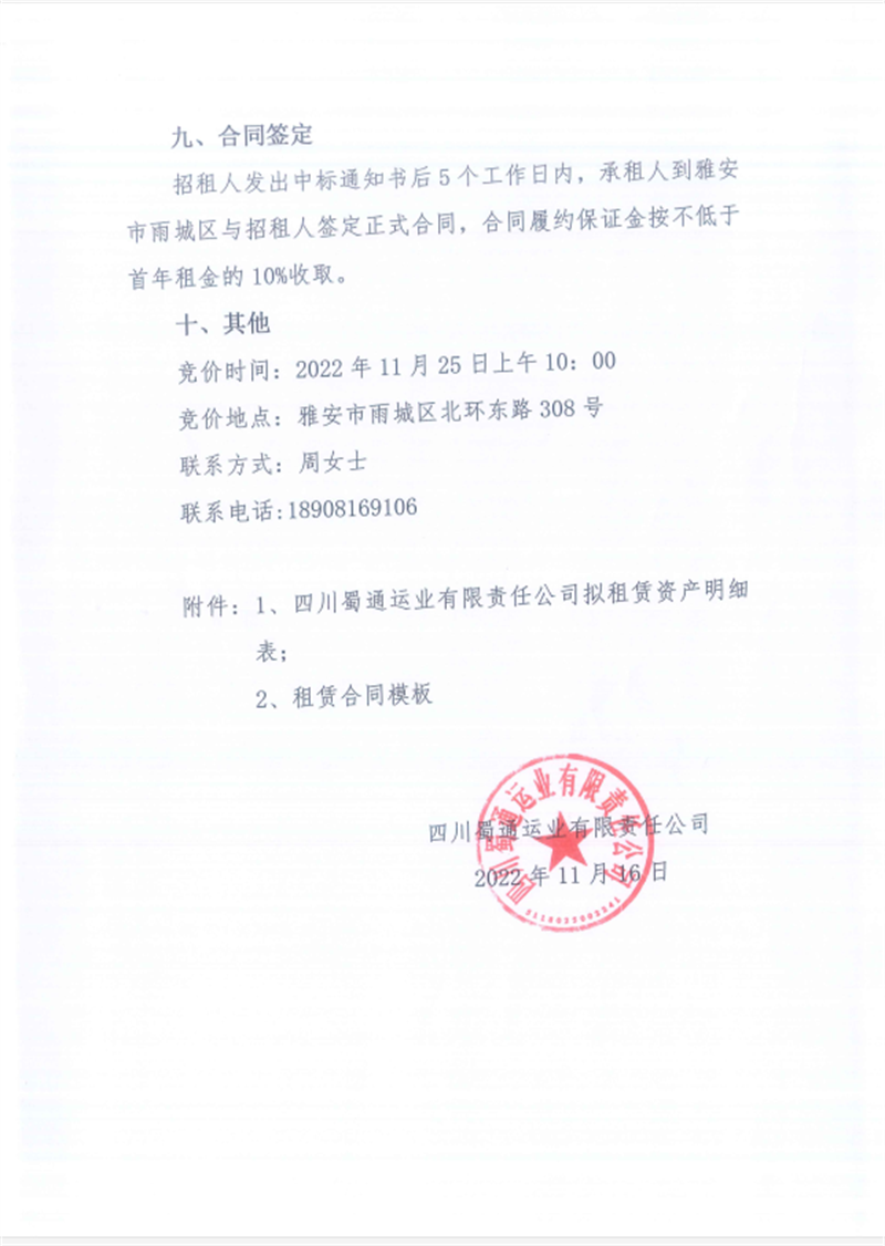 蜀通公司閑置資產(chǎn)招租公告