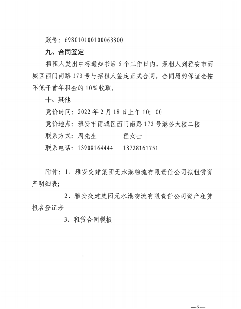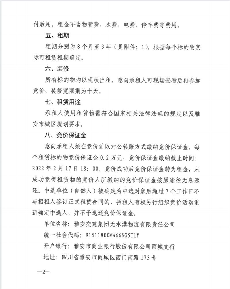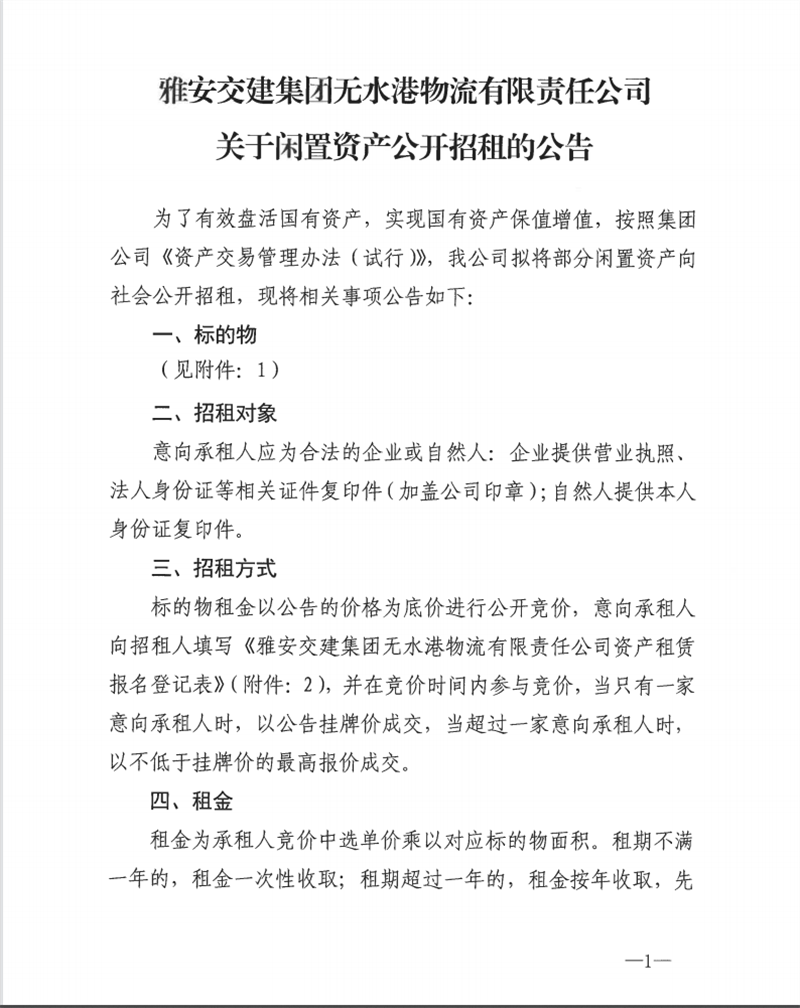 無水港公司關于閑置資產公開招租的公告