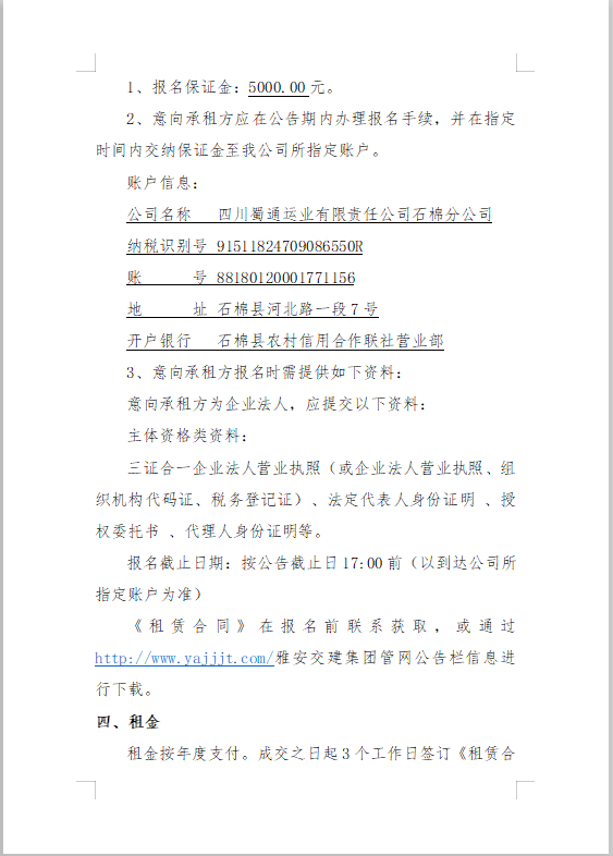 四川蜀通運(yùn)業(yè)有限責(zé)任公司關(guān)于石棉汽車站站內(nèi)商業(yè)門面資產(chǎn)公開招租的公告