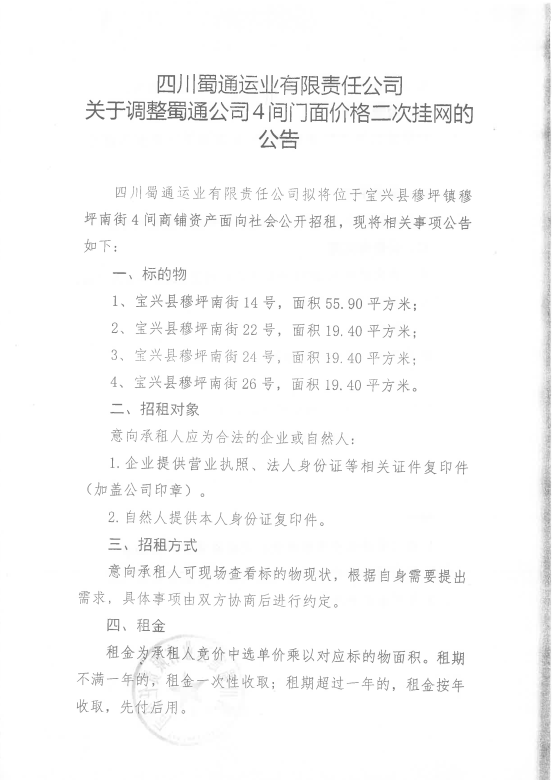 ËÄ´¨Êñͨß\˜I(y¨¨)ÓÐÏÞØŸÈι«Ë¾êP(gu¨¡n)ÓÚÕ{(di¨¤o)ÕûÊñͨ¹«Ë¾4égéTÃæƒr¸ñ¶þ´Î’ì¾W(w¨£ng)µÄ¹«¸æ