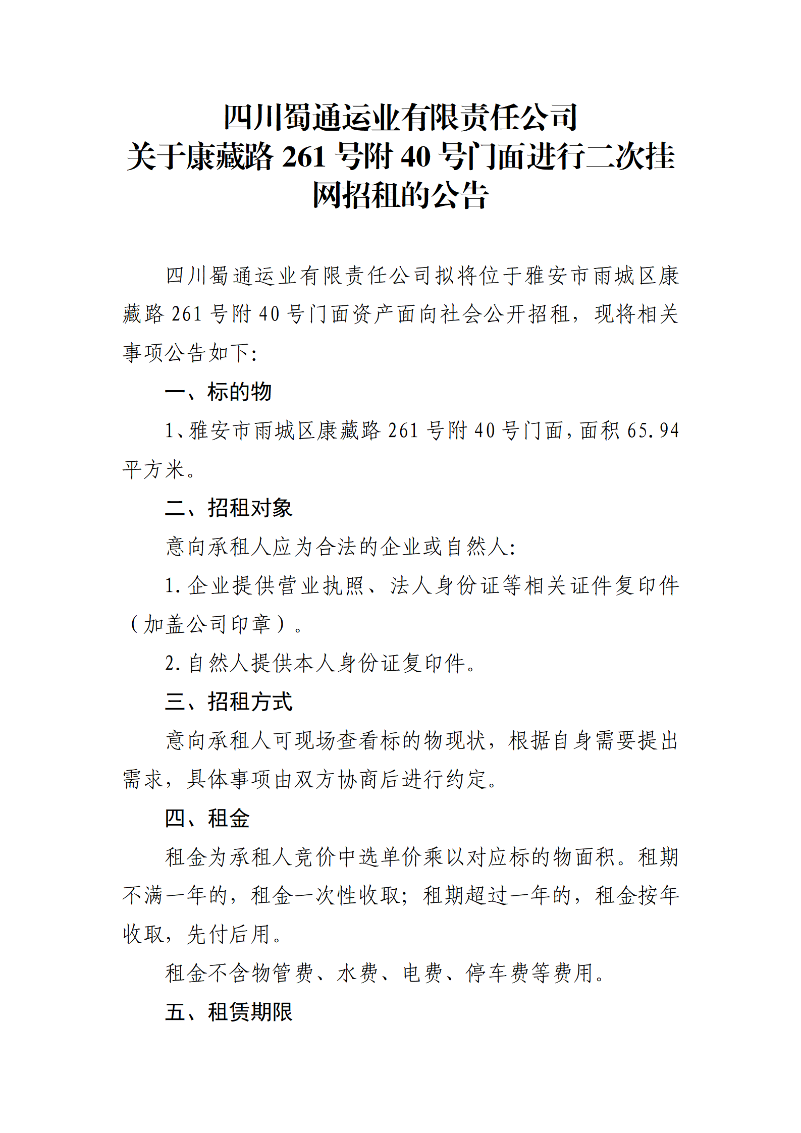 ËÄ´¨Êñͨß\(y¨´n)˜I(y¨¨)ÓÐÏÞØŸ(z¨¦)Èι«Ë¾ êP(gu¨¡n)ÓÚ¿µ²ØÂ·261Ì–¸½40Ì–éTÃæßM(j¨¬n)Ðжþ´Î’ì¾W(w¨£ng)ÕÐ×âµÄ¹«¸æ