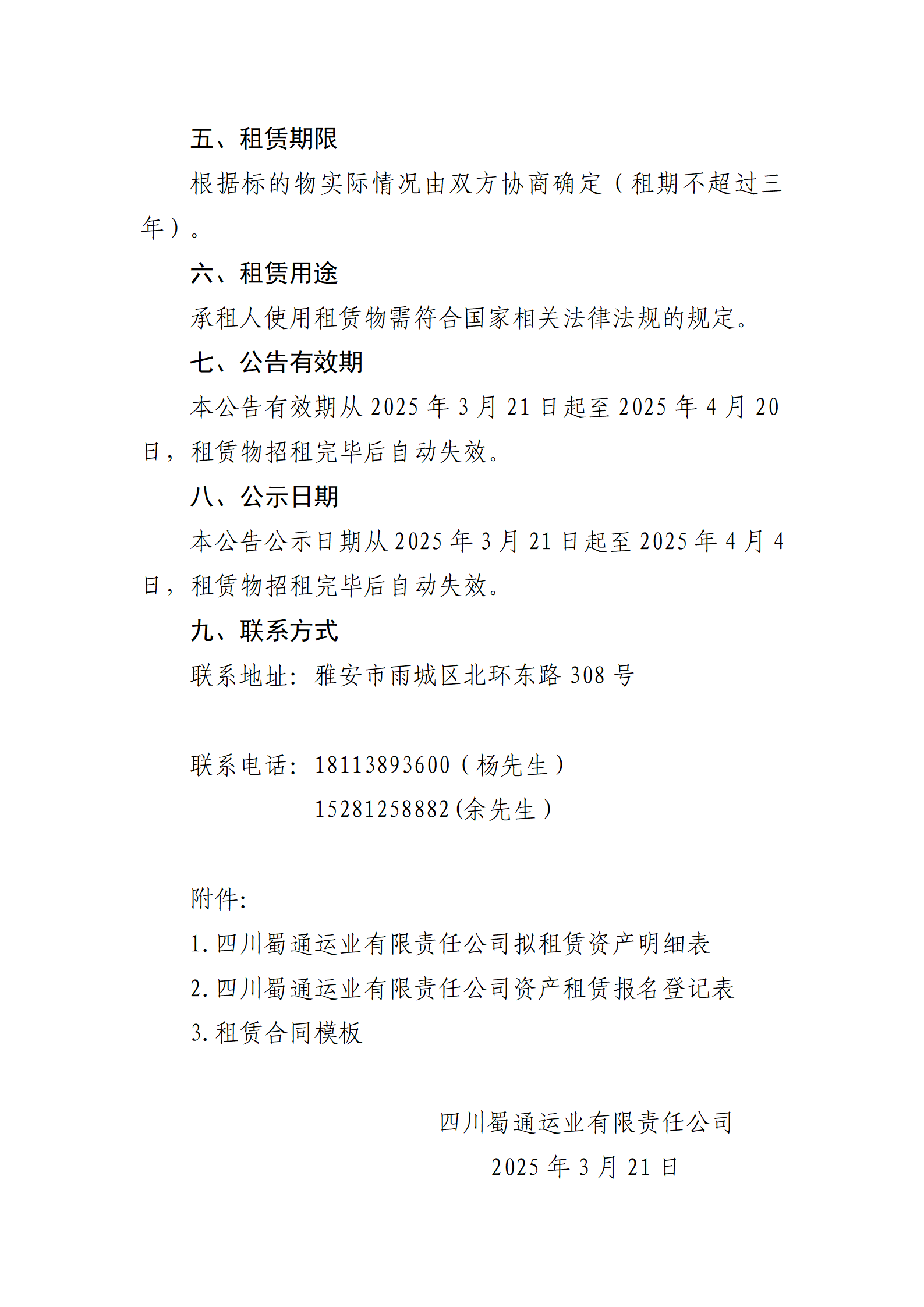 四川蜀通運業(yè)有限責任公司 關于康藏路261號附22號、平安路30號兩處門面進行掛網(wǎng)招租的公告