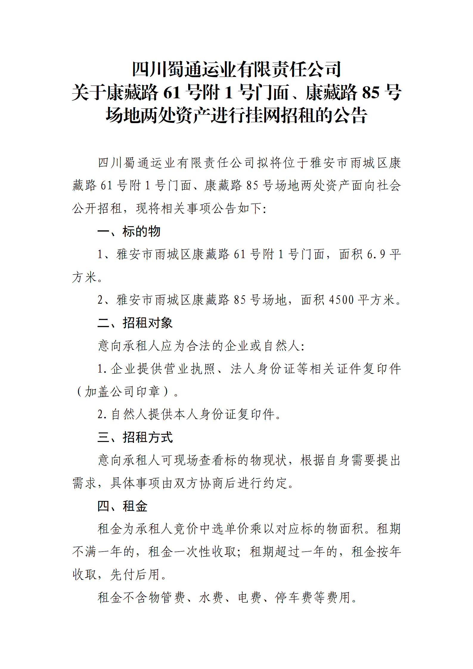 ËÄ´¨Êñͨß\˜I(y¨¨)ÓÐÏÞØŸ(z¨¦)Èι«Ë¾ êP(gu¨¡n)ÓÚ¿µ²ØÂ·61Ì–¸½1Ì–éTÃæ¡¢¿µ²ØÂ·85Ì–ˆöµØƒÉÌŽÙY®a(ch¨£n)ßM(j¨¬n)ÐÐ’ì¾W(w¨£ng)ÕÐ×âµÄ¹«¸æ