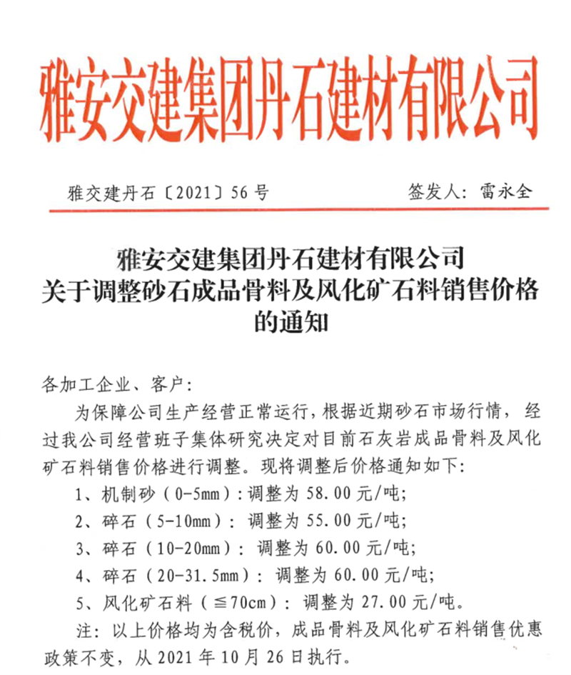 ÑŰ²½»½¨¼¯ˆF(tu¨¢n)µ¤Ê¯¹«Ë¾êP(gu¨¡n)ÓÚÕ{(di¨¤o)Õû³ÉÆ·¹ÇÁϼ°ïL(f¨¥ng)»¯µVʯÁÏäNÊÛƒr(ji¨¤)¸ñµÄ֪ͨ£¨2021.10.26£©