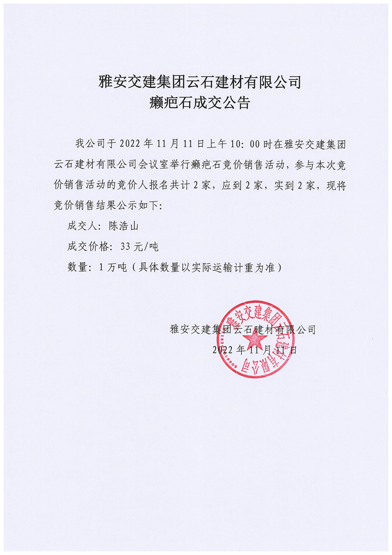 ÑŰ²½»½¨¼¯ˆFÔÆÊ¯½¨²ÄÓÐÏÞ¹«Ë¾°]°Ìʯ³É½»¹«¸æ11.11