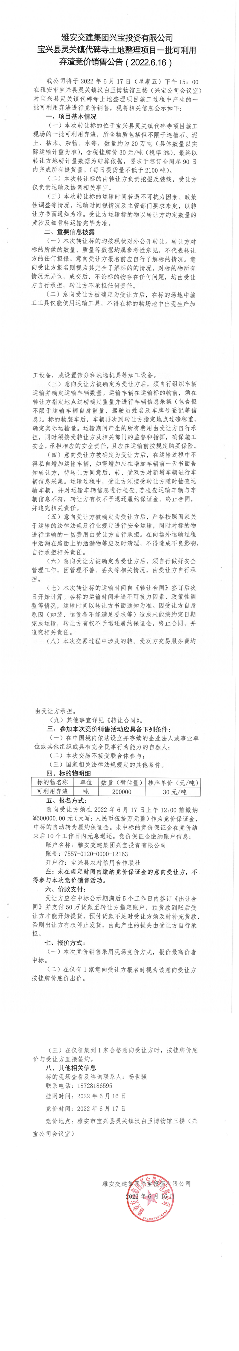 ÑŰ²½»½¨¼¯ˆF(tu¨¢n)ÅdŒšÍ¶ÙYÓÐÏÞ¹«Ë¾ŒšÅd¿hì`êP(gu¨¡n)æ‚(zh¨¨n)´ú±®ËÂÍÁµØÕûÀíí—(xi¨¤ng)Ä¿-Åú¿ÉÀûÓà —‰ÔüµÚ¶þ´Î¸‚(j¨¬ng)ƒr(ji¨¤)äN(xi¨¡o)ÊÛ¹«¸æ( 2022.6.16 )